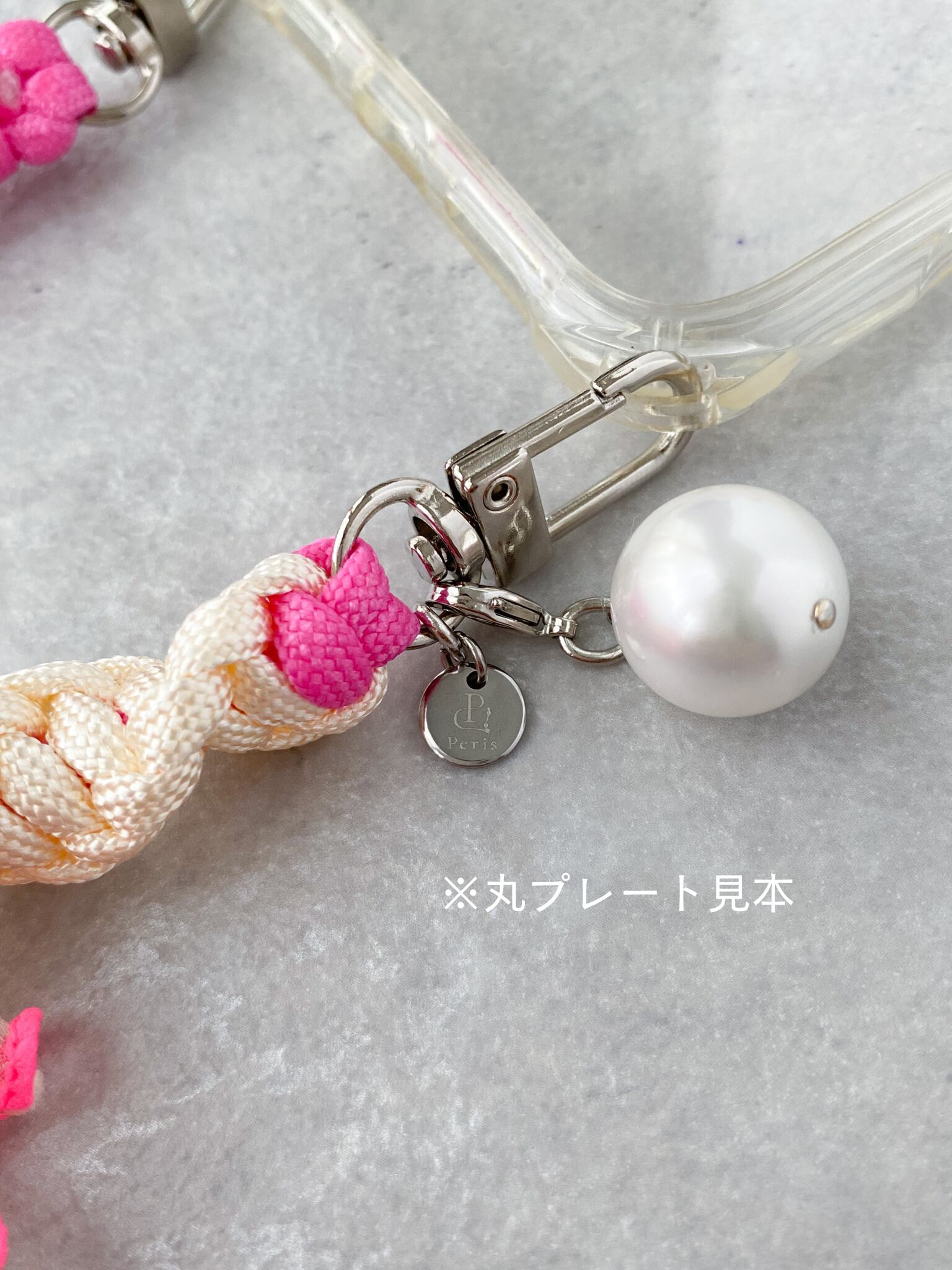 Perisオリジナルのハートプレートと、取り外し可能なパールチャームが付きます♡