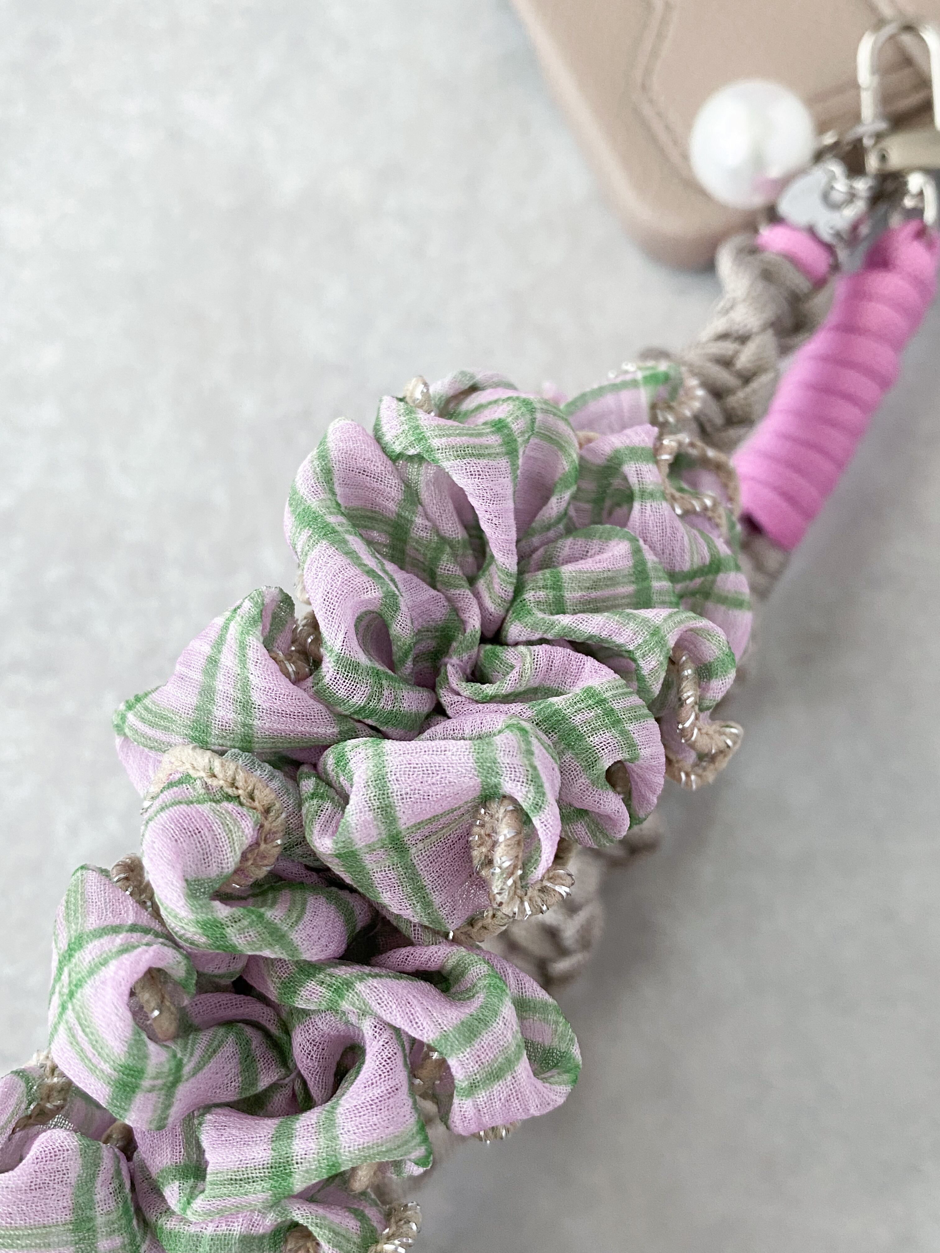 【beige × pink × check】hand strap