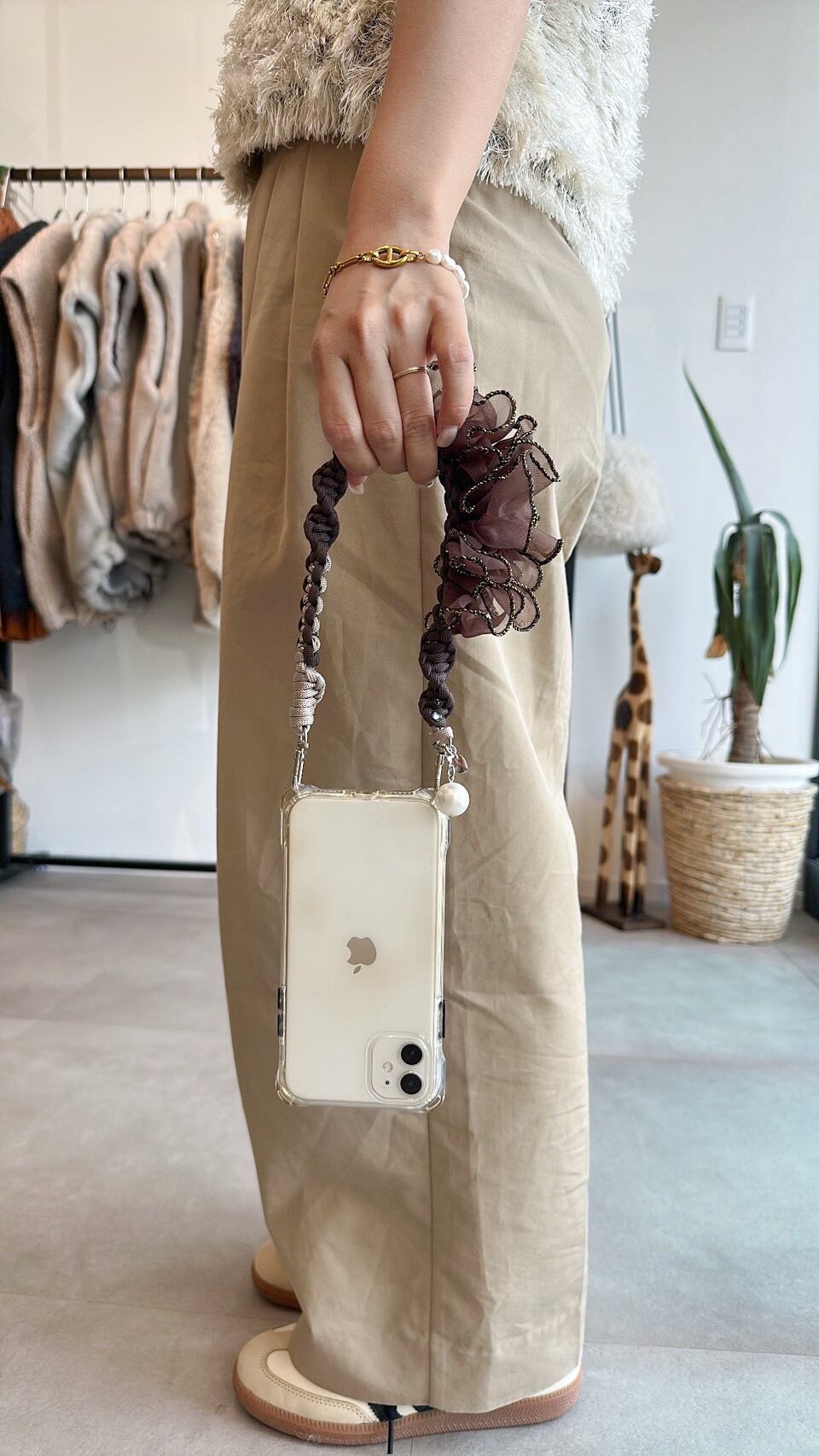 ベースは濃いめのブラウンに、デザインの入ったベージュカラーのコードを合わせています。