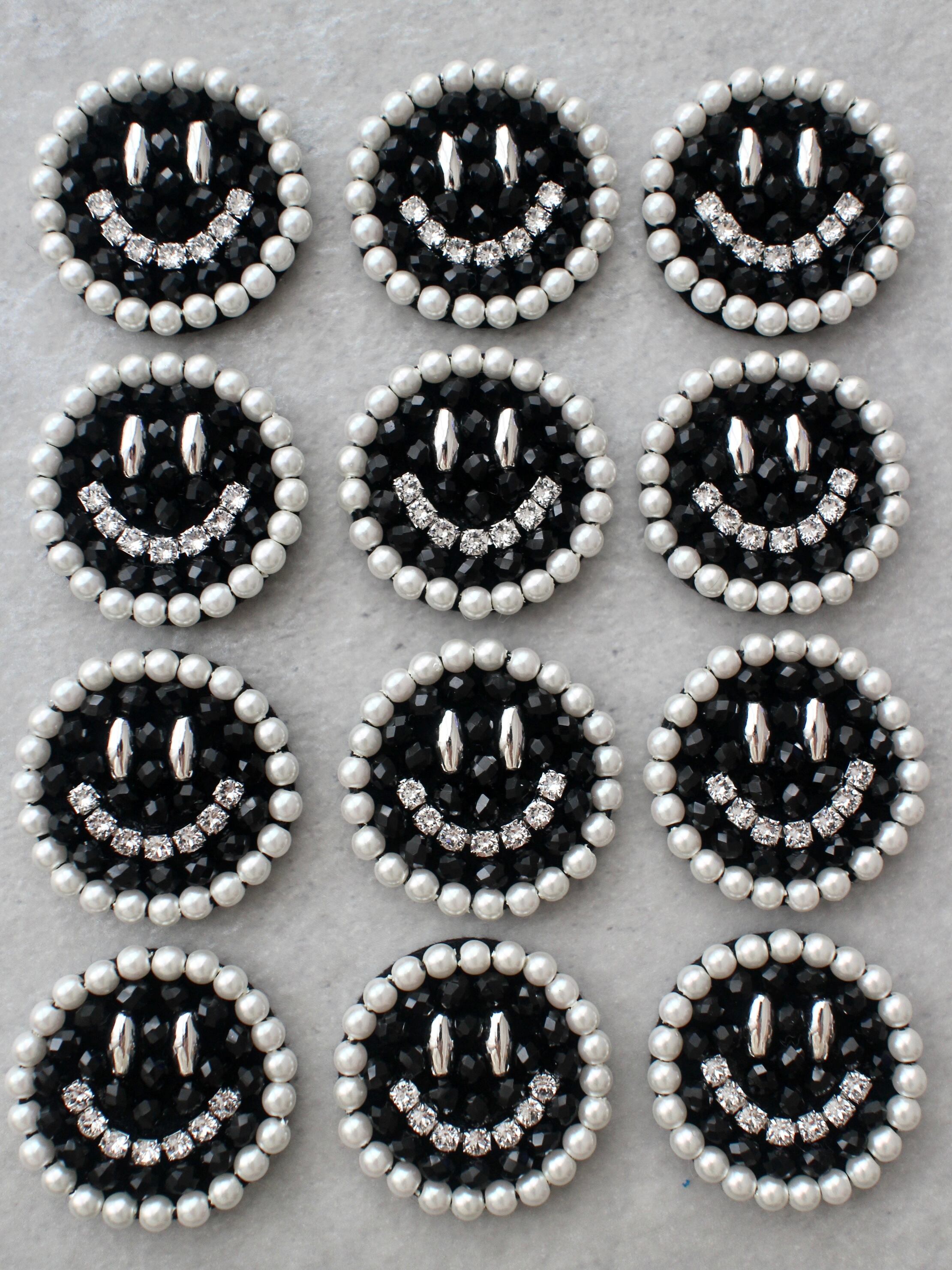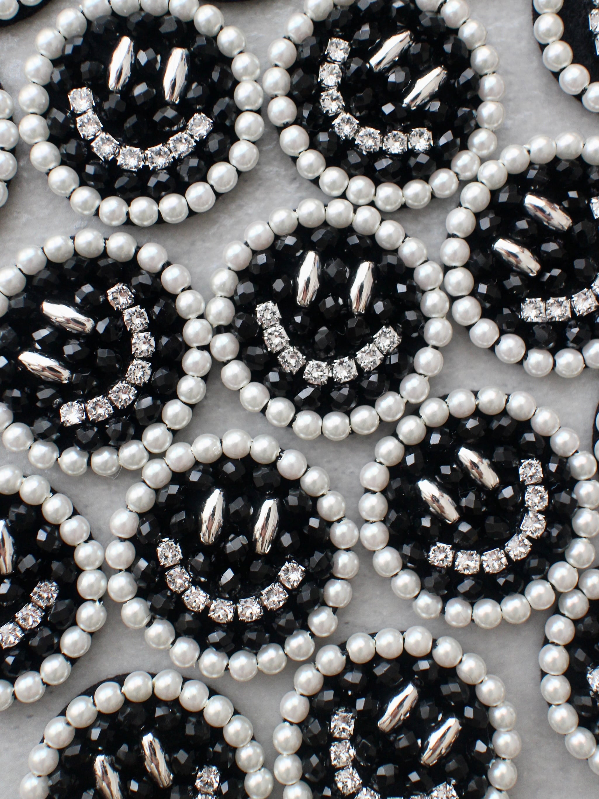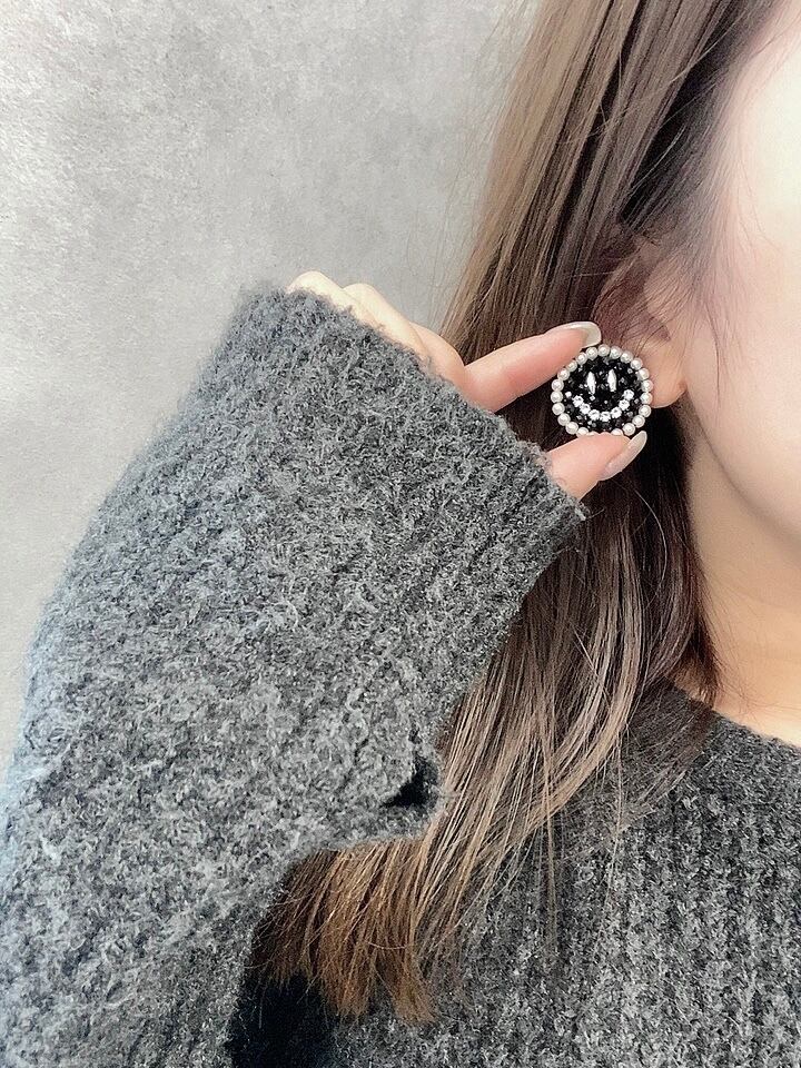 ブラックのガラスビーズやクリスタルが耳元で輝き