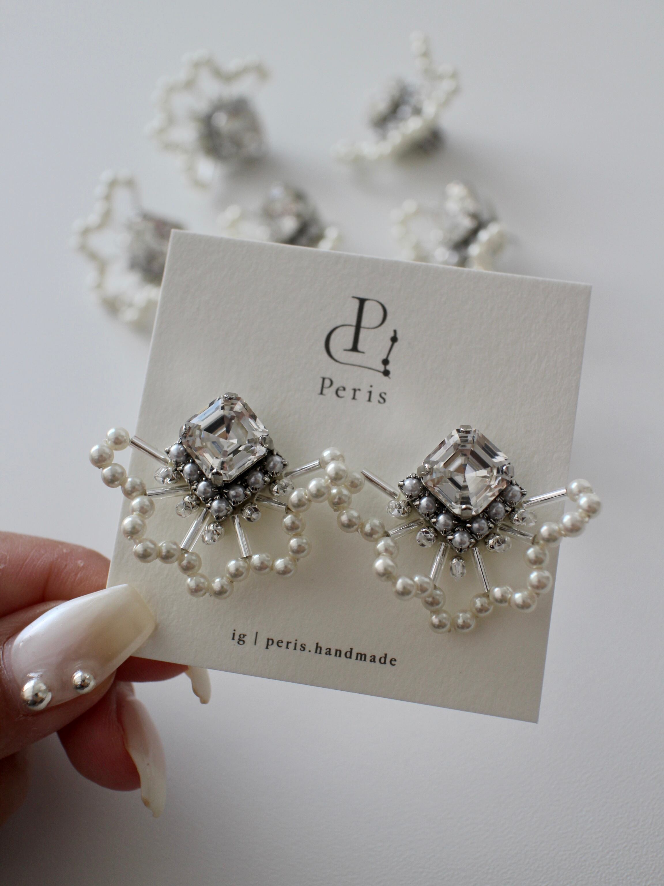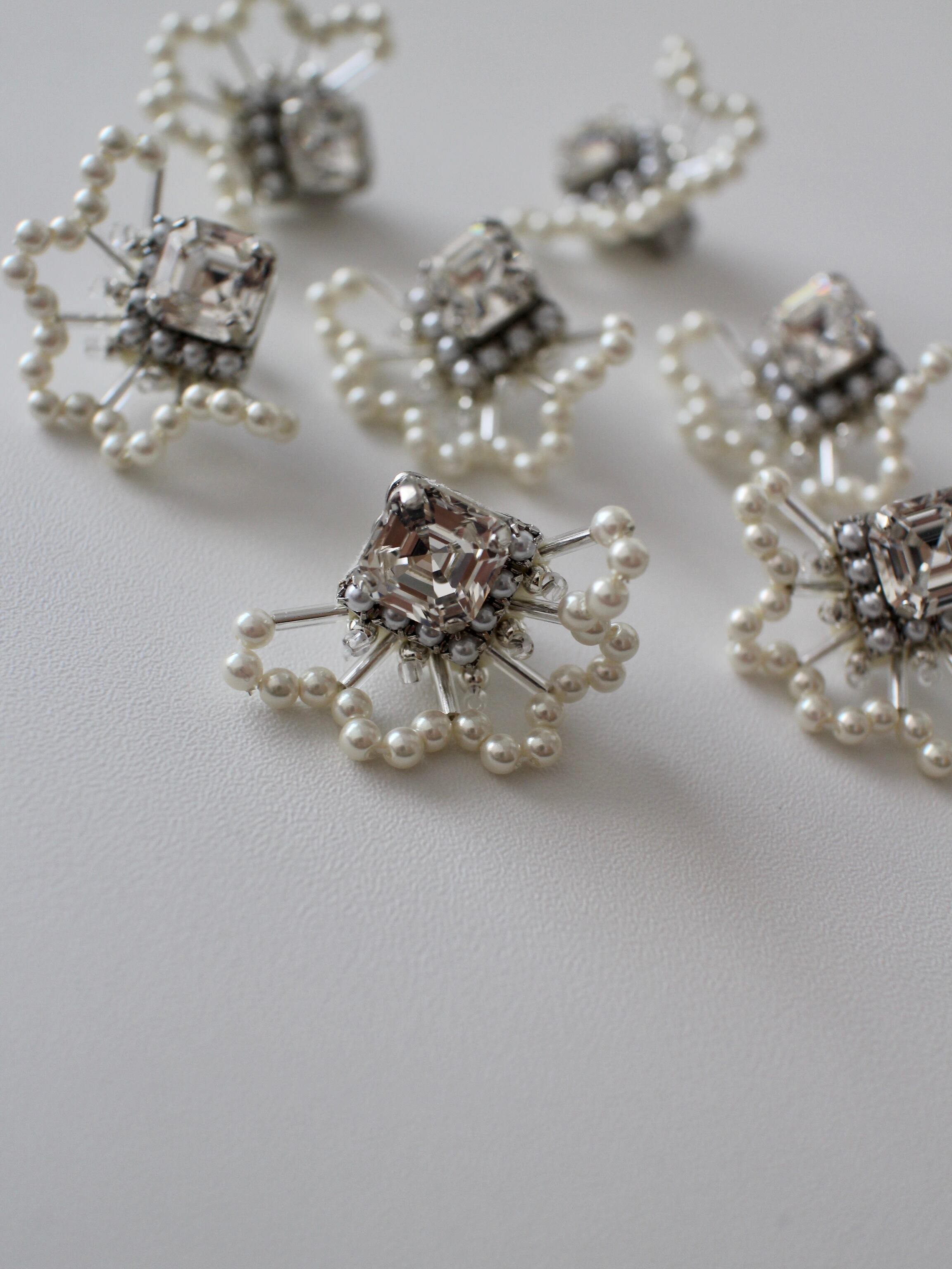 直線的なストーン、ラインを入れ込むことでガーリーさを