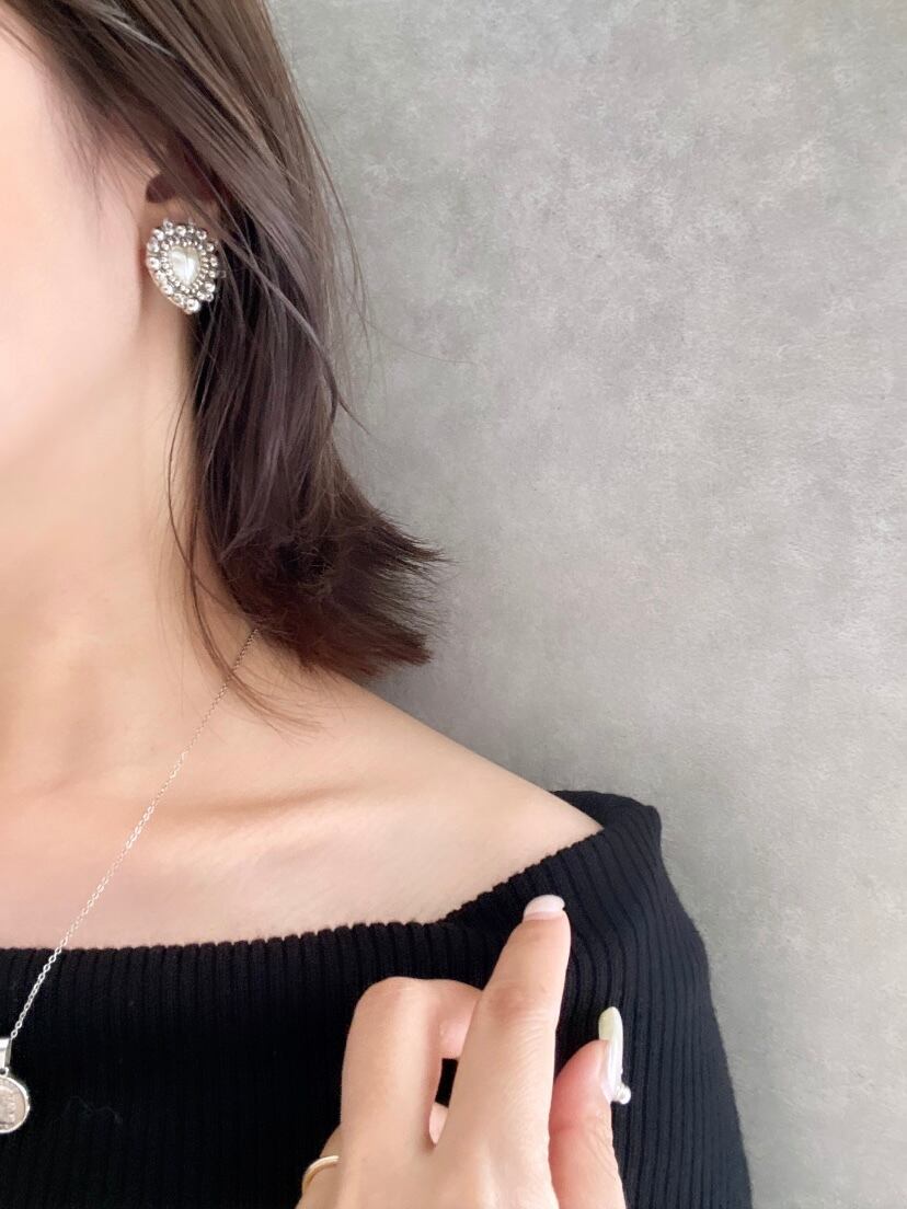 1㎝ほどの小さなパールハートを主役に、日常使いしやすい