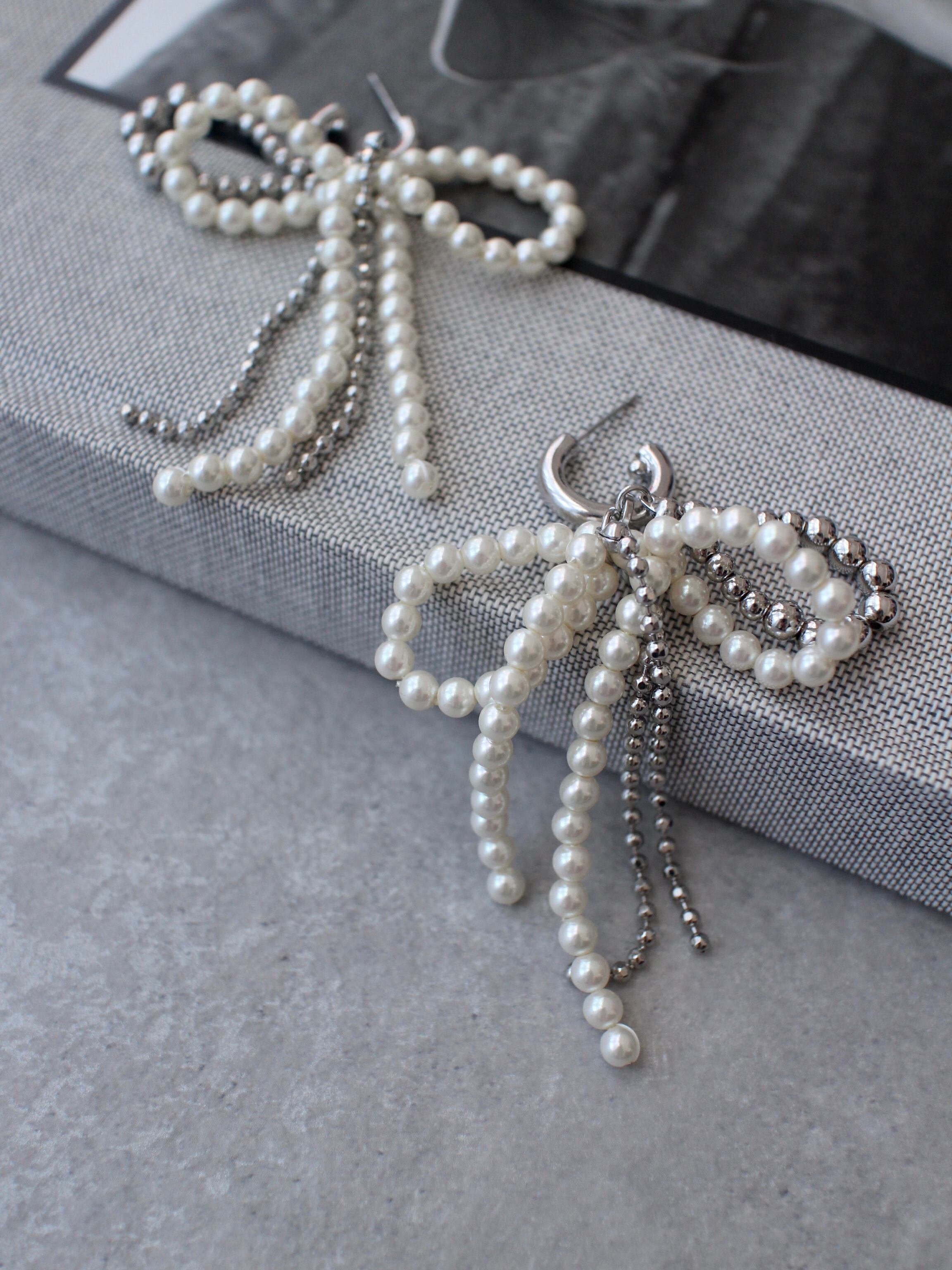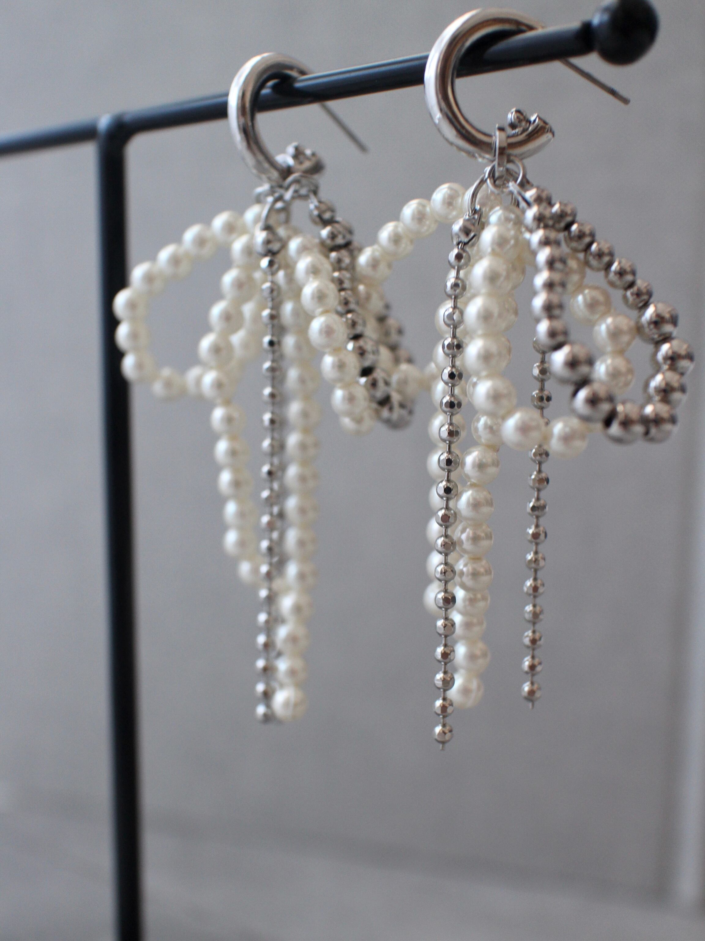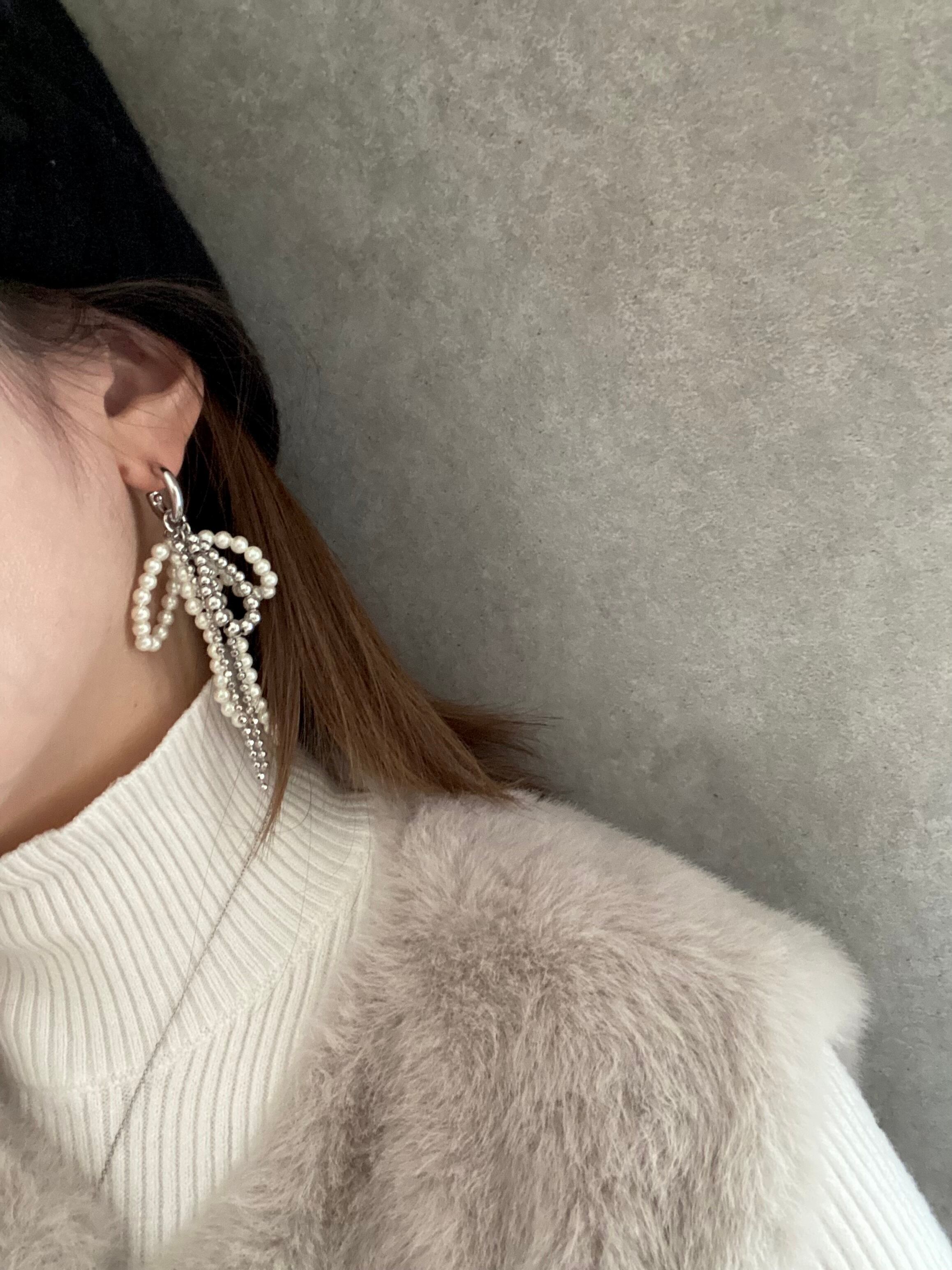 洗練された甘辛スタイルを楽しめるリボンピアス。